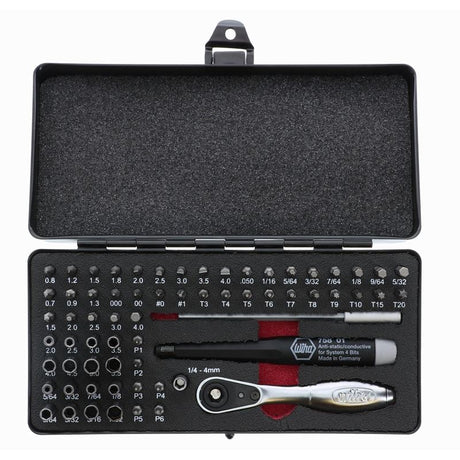 Wiha Master Tech 65 Piece Set - ESD Handle, Mini Ratchet and MicroBits In Metal Storage Box