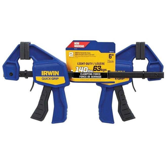 The IRWIN Next Gen Mini Bar Clamp delivers 140 lbs. of clamping force with a resin body and hardened steel bars to resist flexing and bending. Its non-marring pads ensure a secure grip while protecting delicate workpieces. Designed for precision, the one-handed Quick-Release trigger allows instant clamp release, making it ideal for smaller projects and tight spaces. This 6-inch, 2-pack set is perfect for professionals needing reliable, compact clamping solutions.