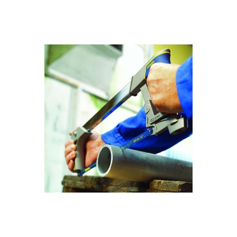 The IRWIN 12 in High Tension Hack Saw has an ergonomic metal frame for higher blade tension and preventing the blade being released when dropped. The metal tensioning mechanism increases the longevity of this saw. The soft touch handles ensure comfortable sawing grip and prevent slippage when in use. This hacksaw is able to reach over 125kg blade tension to ensure accurate cutting.