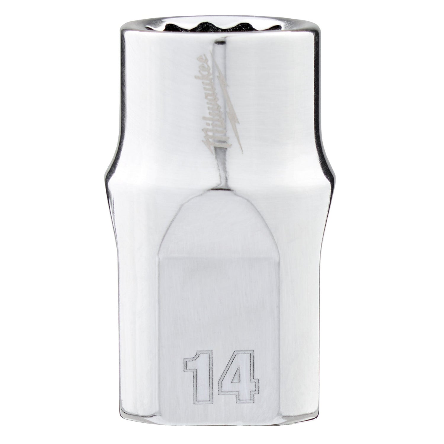 Our 12pc 3/8" Drive 12-Point SAE Deep Well Socket Set with FOUR FLAT™ sides is designed from the ground up to be part of the most versatile socket family. Milwaukee® sockets feature an innovative design with four parallel flat sides, which deter rolling and are wrench compatible. The laser-engraved size markings provide easy identification, and chrome plating offers rust and corrosion protection. This set includes a storage rail for better organization. All Milwaukee® sockets are backed by a Lifetime Guarantee.