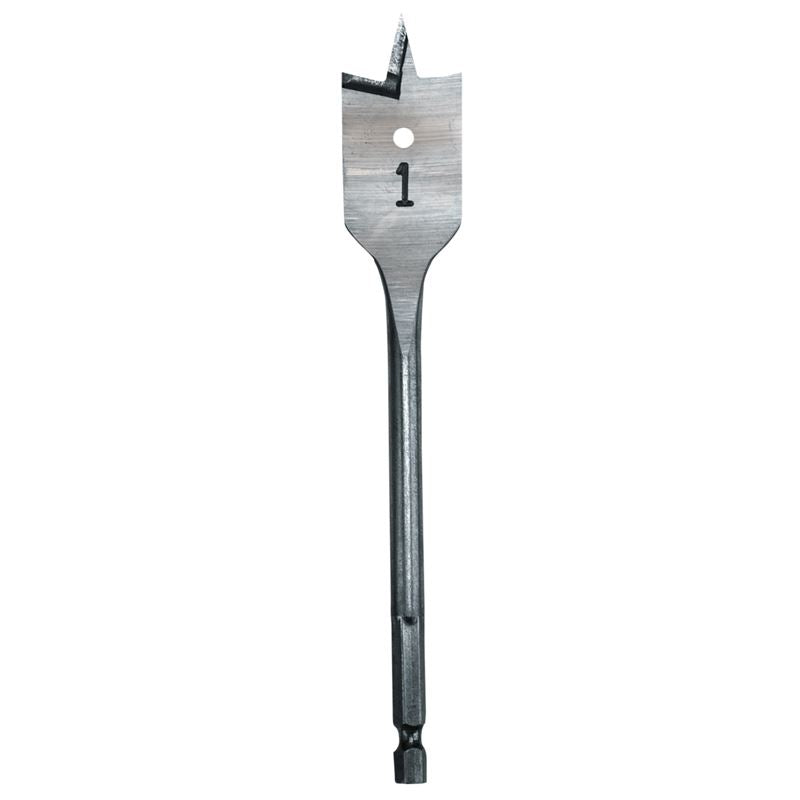 Bore small, clean holes at any angle in a variety of materials with the economical Milwaukee 3/8 in. x 6 in. flat boring bit. This premium quality flat boring bit is made of heat-treated high carbon steel, so the drill point and cutting edge can be resharpened for cost savings and long life. Bore clean, fast holes at any angle in wood, plastic, plywood and Formica. This bit offers a 6 in. drilling depth but can be used with a 12 in. extension (48-28-3350) for extended deep-hole drilling. 3/16 in. shank diameter.