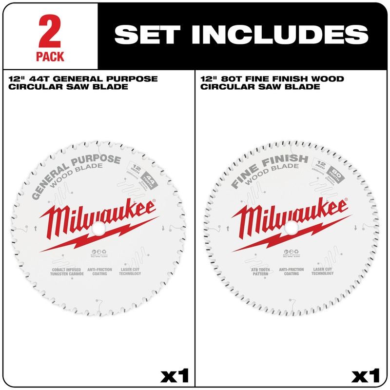 Milwaukee 48-40-1232 Circular Saw Two-Pack Wood Cutting Blades 12in 44T + 80T