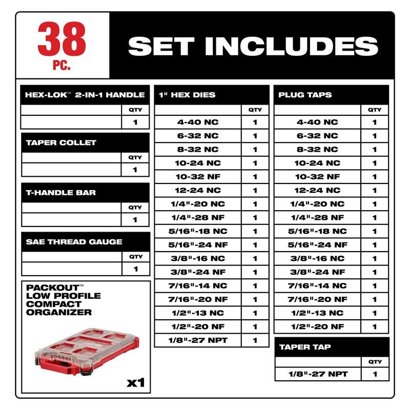 Milwaukee 49-22-5604 38PC SAE Tap and Die PACKOUT Set w/ Hex-LOK 2-in-1 Handle