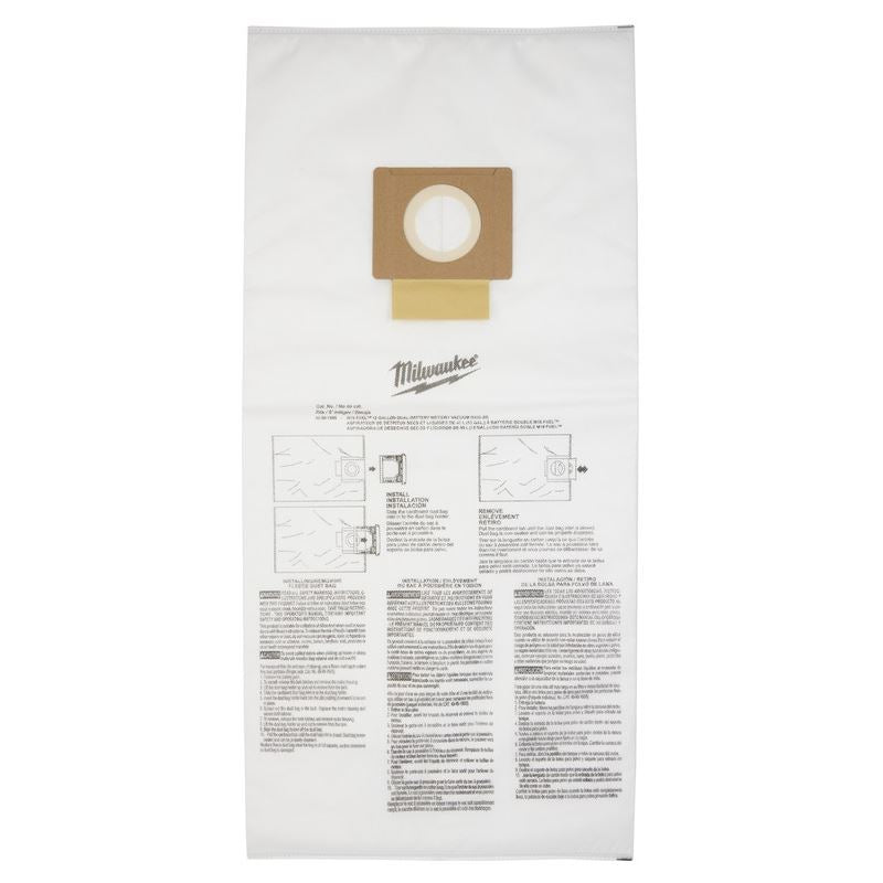 Our Fleece Dust Bags (5PK) are compatible with the MILWAUKEE M18 FUEL 12 Gallon Wet/Dry Vacuum (0930). With 98.5% filter efficiency, these disposable fleece dust bags are ideal for fine dust collection. The vacuum cleaner dust bags are fully enclosed and act as a pre-filter to prolong filter life and are easy to dispose of with the pull tab to prevent dust from escaping. This kit includes five Fleece Dust Bags.INCLUDES: