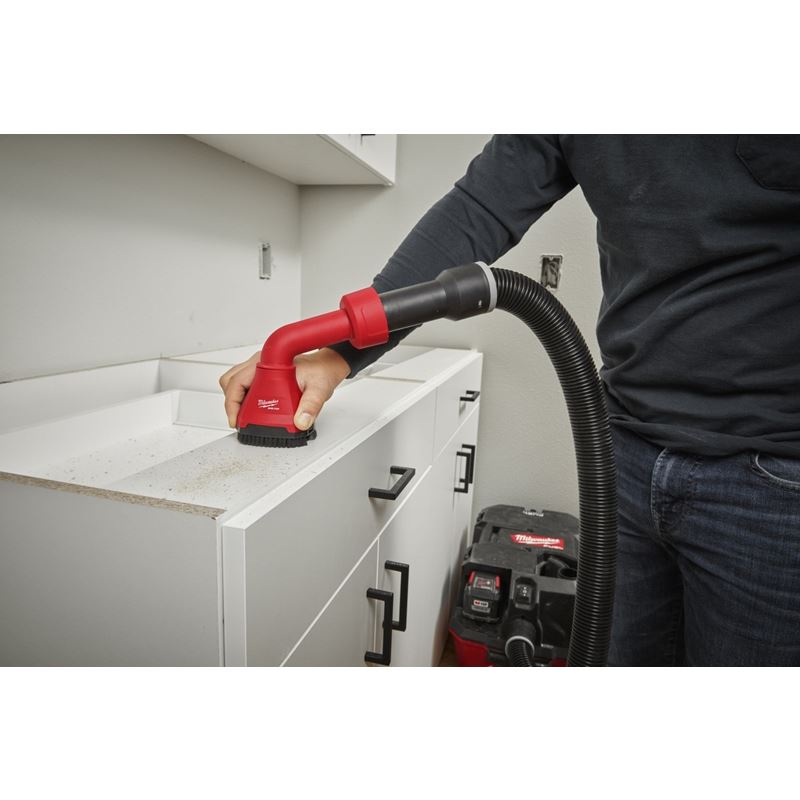 Our AIR-TIP Swiveling Palm Brush enhances your cleaning experience with its swiveling grip for easier movement. An ergonomically designed 360 degree swiveling palm grip allows you to create more cleaning leverage and freedom of movement when needed most. This swivel vacuum brush comes with three interchangeable heads for more cleaning options. The rubber bristle head is optimized for cleaning automotive carpet and collecting stubborn debris. The stiff brush head allows for deep cleaning agitation of debris, and the soft bristle head is for cleaning more delicate surfaces. The compact and hangable storage bag ensures any loose bristle heads stay in place. The MILWAUKEE AIR-TIP Swiveling Palm Brush is compatible with other wet/dry vacuum brands with 1-1/4in, 1-7/8in, 2-1/2in diameters, and is part of the AIR-TIP family of Trade Focused Vacuum Accessories.INCLUDES: