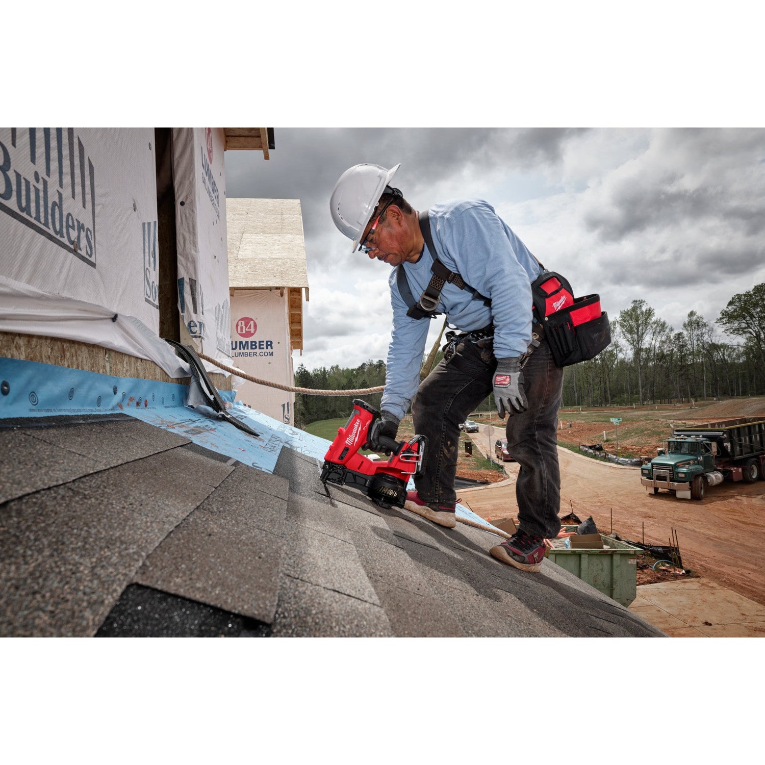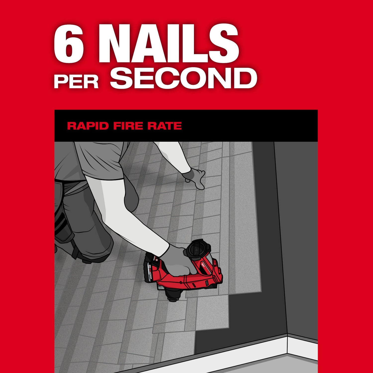The MILWAUKEE® M18 FUEL™ Coil Roofing Nailer delivers cordless innovation to Roofing and Exterior Contractors through optimized performance, best-in-class runtime, and unmatched versatility. This solution is designed for small roofing jobs and repairs along with the added versatility of vinyl siding installation. By leveraging our nitrogen air spring technology, POWERSTATE™ Brushless motor, and REDLINK™ Intelligence, this nailer delivers the performance to seat nails at firing rates of up to 6 nails per second. When paired with the M18™ REDLITHIUM™ HIGH OUTPUT™ CP3.0 battery pack, this nailer sinks up to 1100 nails per charge, providing best-in-class runtime to maximize productivity. This tool features an attachable vinyl siding tip; increasing versatility to utilize the nailer for vinyl siding installation. The cordless roofing nailer features a pivoting belt/scaffolding hook, tool-free depth of drive adjustment, dry fire lockout, and replaceable rubber wear pads. The M18 FUEL™ Coil Roofing Nailer joins the M18™ System of over 250 solutions and is compatible with all M18™ REDLITHIUM batteries.