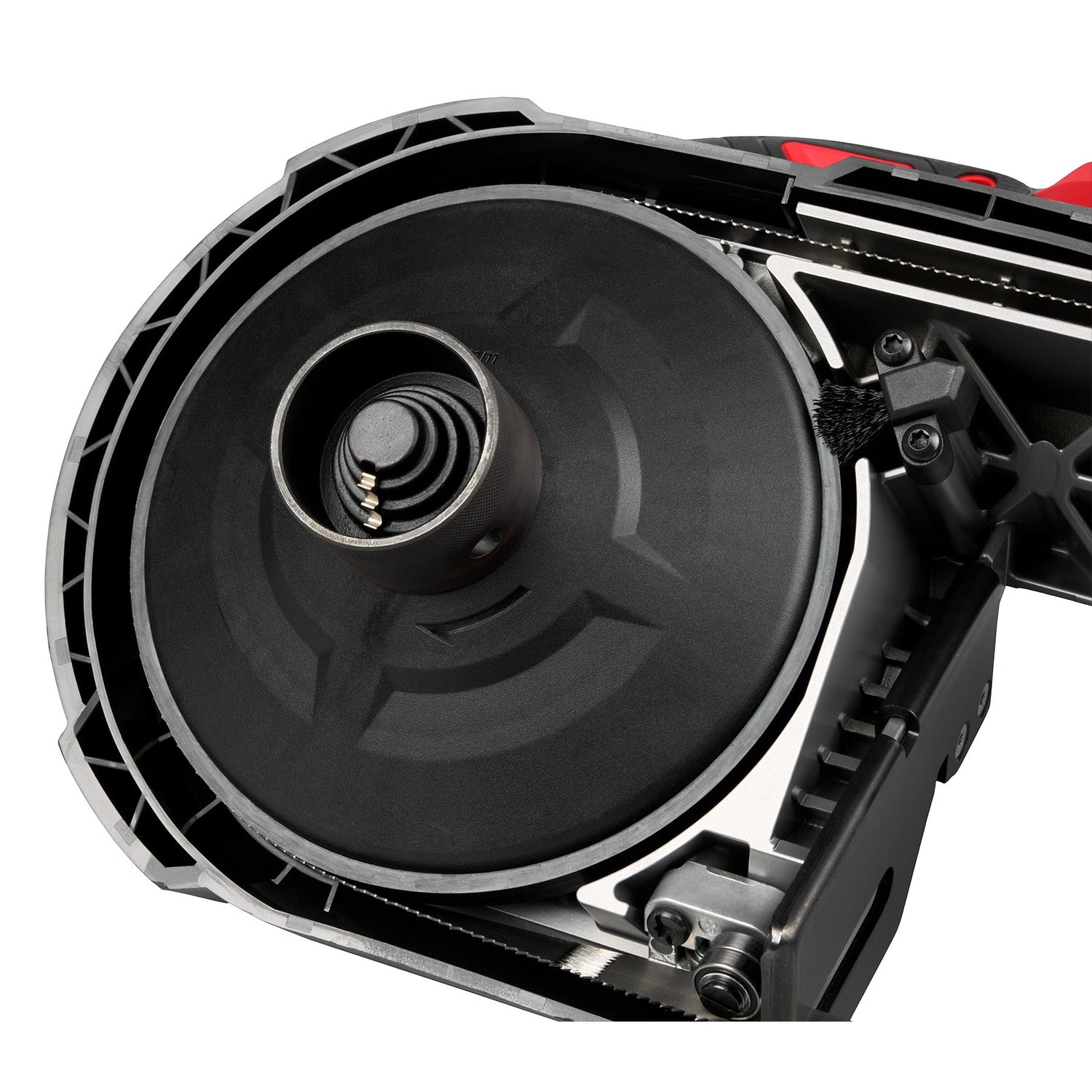 Our M18 FUEL™ Deep Cut Band Saw delivers user-demanded performance with the ability to cut faster on a 4" Black Iron Pipe than competitors. Also being lightest in its class, this Band Saw provides an overall better cutting experience. Milwaukee's cordless Deep Cut Band Saw provides users with up to 78 cuts per charge, eliminating multiple trips to the charger onsite. The POWERSTATE™ brushless motor delivers maximum power, and 550 sfpm to remove material faster and increase productivity. This Band Saw is supplied with Variable Speed Mode Select, and a feathering trigger to allow for control over the speed of cut on thicker metals. A tool-free adjustable shoe, to help guide the user through a straighter cut, and an LED WORKLIGHT to illuminate their application. This Band Saw is equipped with features to enhance the control of their cut while maximizing their cutting experience throughout the day.