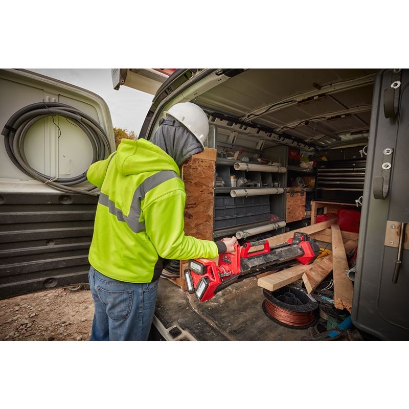 Stand up. Light up. Charge up. the M18 ROCKET LED tower light/charger is designed to deliver a lighting solution that adapts, performs, and survives professional use unlike any other portable work light. The 2135-20 can be setup in seconds to a max height of 7 Ft., and collapses to less than 4 Ft. for easy transport and storage. The light head can be extended from 4 to 7 Ft. to light overhead work or minimize shadows when casting light downward. The multi directional light head gives users the ability to orient the three independently pivoting light heads to cast light in several directions. With an integrated AC plug, a user can plug in the light with a standard extension cord, and charge any M18 REDLITHIUM pack. Delivering 3,000 lm, it fills up large areas with TRUEVIEW high definition light. For optimized control over the output and run-time, the M18 ROCKET LED light has three settings: high provides 3,000 lm at 2+ hours, medium provides 1,700 lm at 4+ hours, and low provides 900 lm at 8 hours with a M18 REDLITHIUM XC5.0 battery pack.