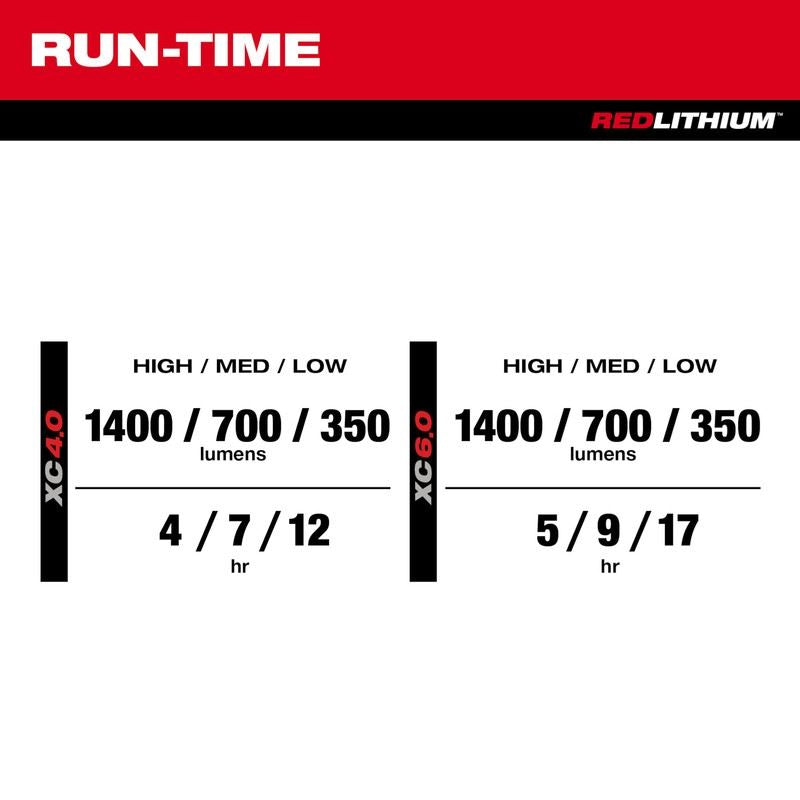 Over 4 Hours of Run time on HIGH with an M12 XC4.0 Battery