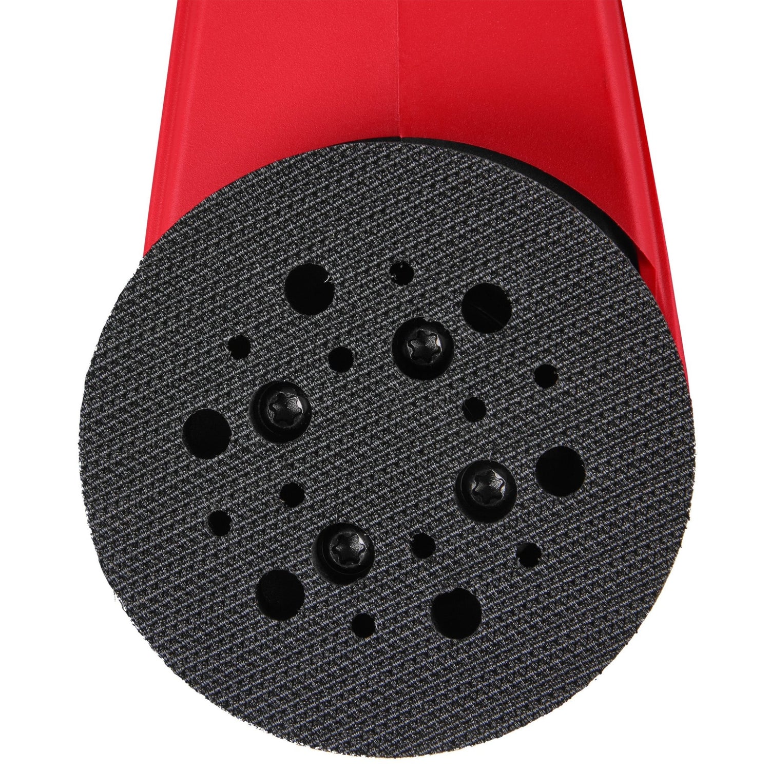 Designed for the professional carpenter, remodeler, or general contractor; our M12 FUEL™ 3” Random Orbital Detail Sander combines the power and efficiency to sand the toughest materials on site while the compact pad size allows for delicate, controlled sanding during the installation of trim, railings or other refinishing applications. Our sander delivers precise removal for spot sanding, more control and maneuverability, and over 80% dust collection. Ergonomically engineered the sander has greater access to hard-to-reach areas and active dust extraction for minimal dust build-up with the versatility to utilize the included bag or universal hose adapter. The sander features a random orbital sanding motion with a 3/32” orbit diameter to deliver a clean, consistent stain-grade surface finish, a variable speed trigger with a lock-on button, and four-speed settings from 10K - 4K for control across a wide variety of materials. The lightweight design at 2 lbs provides unmatched maneuverability and reduced fatigue when used across multiple orientations. The adjustable On/Off LED light bar illuminates 270 degrees for maximum visibility of the work area. The optional sponge pad allows the abrasive to contour to the work surface when working with complex trim profiles, while the pad saver protects against heat buildup to extend the life of the backing pad. Our battery-powered 3” Random Orbital Sander is backed by our industry-leading 5-year limited power tool warranty.