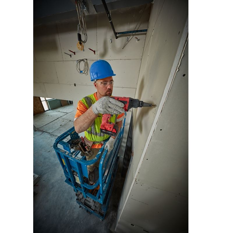 The M18 FUEL drywall screw gun is faster than corded, features auto start functionality and delivers up to 3X longer run time than other cordless competitors. The POWERSTATE brushless motor spins at 4,500 RPMs resulting in faster productivity. With REDLINK Plus intelligence, Milwaukee's auto start feature automatically starts the motor on contact with drywall providing less noise between screws and 3X longer run time. REDLITHIUM 2.0 Ah batteries the drywall gun delivers up to an industry leading 27 sheets on one charge. The M18 FUEL drywall screw gun delivers the balance and weight desired by professionals for all day use.