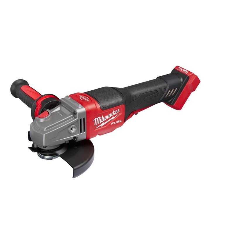 The M18 FUEL 4-1/2 in. to 6 in. braking grinder is Milwaukee's most powerful small angle grinder to date, with a high performance brushless motor that generates 13 A corded power. The POWERSTATE brushless motor delivers 9,000 RPM, giving the tool the power needed to exceed performance expectations in all applications, as well as longer motor life, providing lower cost of ownership compared to brushed motors. Integrated Rapid Stop braking technology stops all accessories in 3 seconds or less, creating a safer user experience. By offering a full 6 in. capacity, users can feel confident replacing their corded tools with the M18 FUEL 4-1/2 in. to 6 in. braking grinder. The power and runtime delivered by the M18 6.0 high output batteries provides the user with more material removed per charge, making users more productive and efficient on the jobsite. Tool-free accessory changes using the FIXTEC nut and guard adjustments mean less downtime during work. Grinding wheel sold separately.