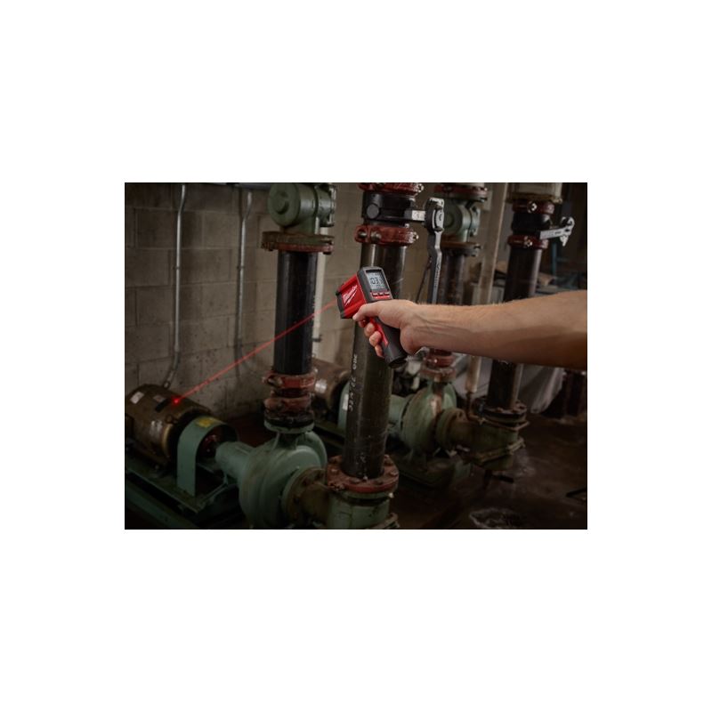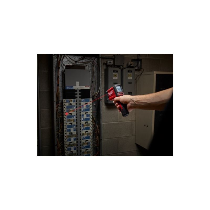 users in any environment. Simple High/Low alert setup makes scanning easier and faster. With a 7-point reinforced frame, fully bumpered nose, and shielded LCD, the Milwaukee Infrared Temp-Gun survives 6ft drops for superior durability.