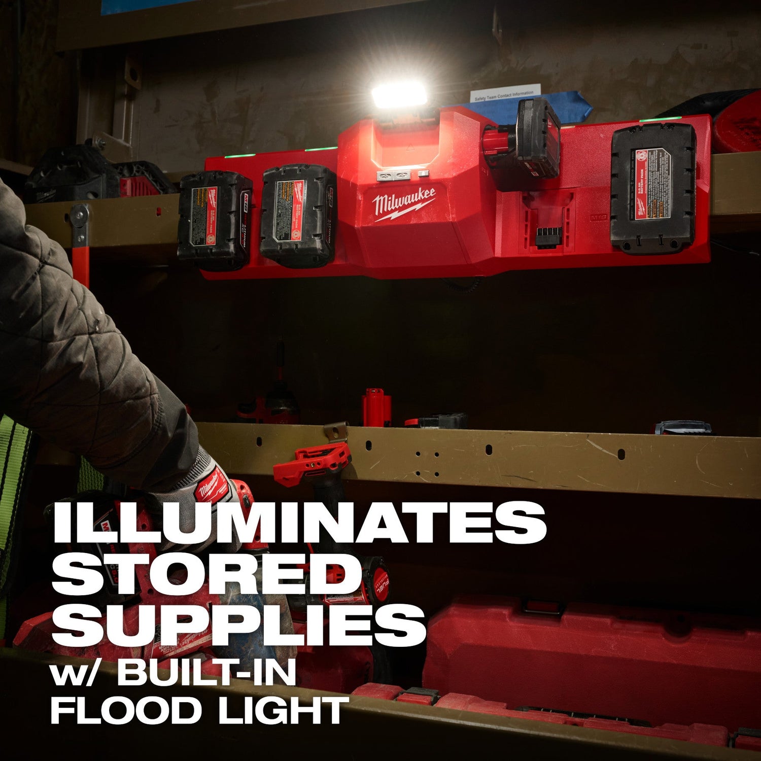 Our M18™ and M12™ Gangbox Rapid Charger is uniquely designed for users working out of gangboxes and other steel storage spaces on commercial job sites. By utilizing the strong magnetic base or cleat, the rapid charger can be mounted in multiple different orientations, maximizing storage space within a gangbox. This battery charger includes a 450L flood light, which illuminates stored supplies, allowing users to spend less time at the gangbox and get back to work quicker.