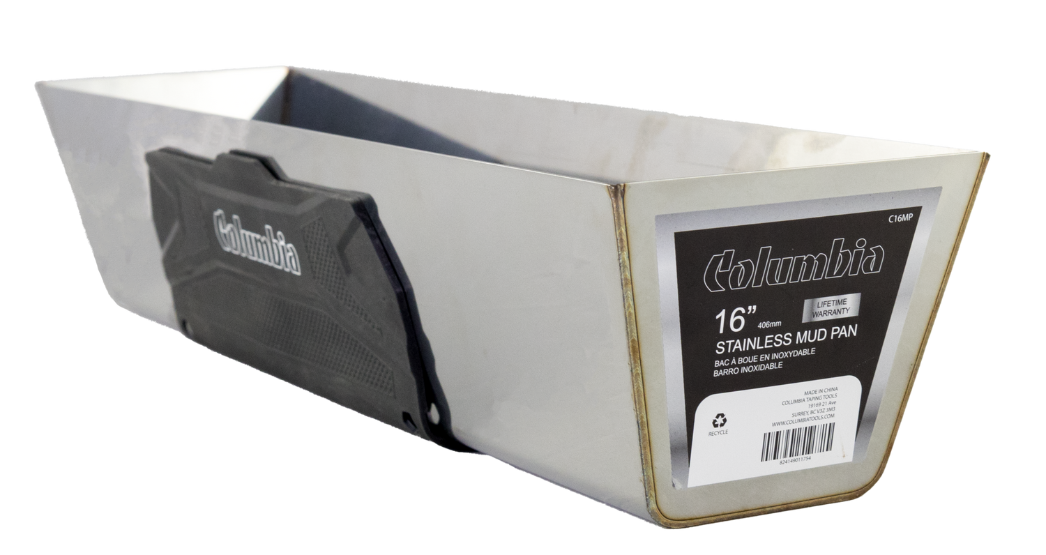Columbia Tools has launched the Columbia Mud Pan—the first in our new line of premium hand tools, designed for professionals who demand durability, comfort, and performance Crafted from heavy-gauge stainless steel, this mud pan is built to withstand the toughest tasks, while its watertight, laser-welded seams ensure long-lasting reliability. With tapered ends and sides for a secure grip, this tool is ready to handle any job with ease. Plus, every Columbia Mud Pan comes with a free soft, non-slip rubber grip for enhanced comfort and ease of use.
