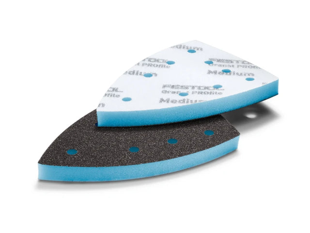 Granat PROfile Abrasives – Designed for Details. Engineered for Contours. Granat PROfile is a new class of soft foam abrasive developed for precision surface preparation on complex shapes. Backed by a 1/2" (13 mm) layer of flexible polyurethane foam and bonded with Festool’s high-performance Granat abrasive, this system delivers aggressive sanding power while conforming effortlessly to contours, curves, and profiles. Whether you're working on intricate moldings, raised panels, rounded edges, or turned spindles, Granat PROfile adapts to the surface for consistent, high-quality results. Optimized for use with sanding power tools, this abrasive excels where traditional flat abrasives can’t. It’s built to handle modern coatings—ideal for VOC-compliant clear coats—and works equally well on wood, painted surfaces, plastics, acrylics, solid surface materials, fillers, and repair compounds. Granat PROfile brings Festool’s precision and durability to detailed work—making it the go-to solution for finishers, woodworkers, and painters who demand control, flexibility, and exceptional surface quality.