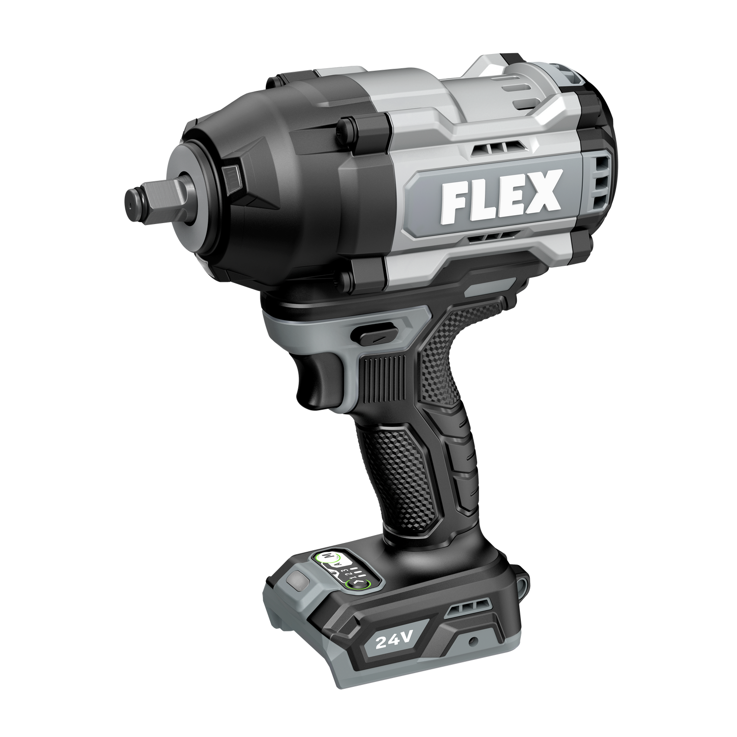 Rusty bolts and over-tightened lug nuts don’t stand a chance against the unrelenting power of the FLEX 24V ½” High-Torque Impact Wrench, which delivers up to 1,500 foot-pounds of maximum torque when paired with the recommended 6.0Ah Stacked Lithium battery (sold separately) or higher. Dampeners deliver vibration suppression that isolates you and the tool from vibration for reduced fatigue and maximum control. The cordless impact wrench features two auto control modes: Bolt Auto Stop mode prevents over-tightening, breaking, or stripping, while Bolt Removal Mode stops the tool when the bolt is loosened. A multi-light LED delivers bright illumination in dark areas. This high-torque impact wrench dominates with the FLEX Stacked Lithium Advantage: unmatched battery power, runtime, and charging capability (battery and charger sold separately).