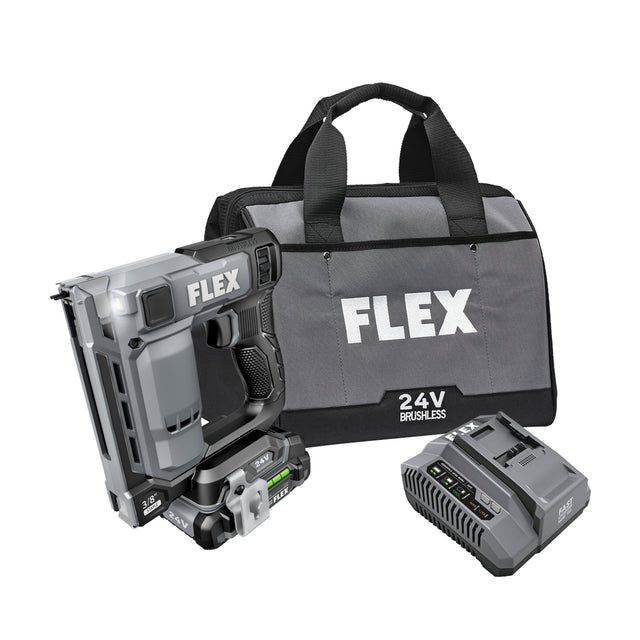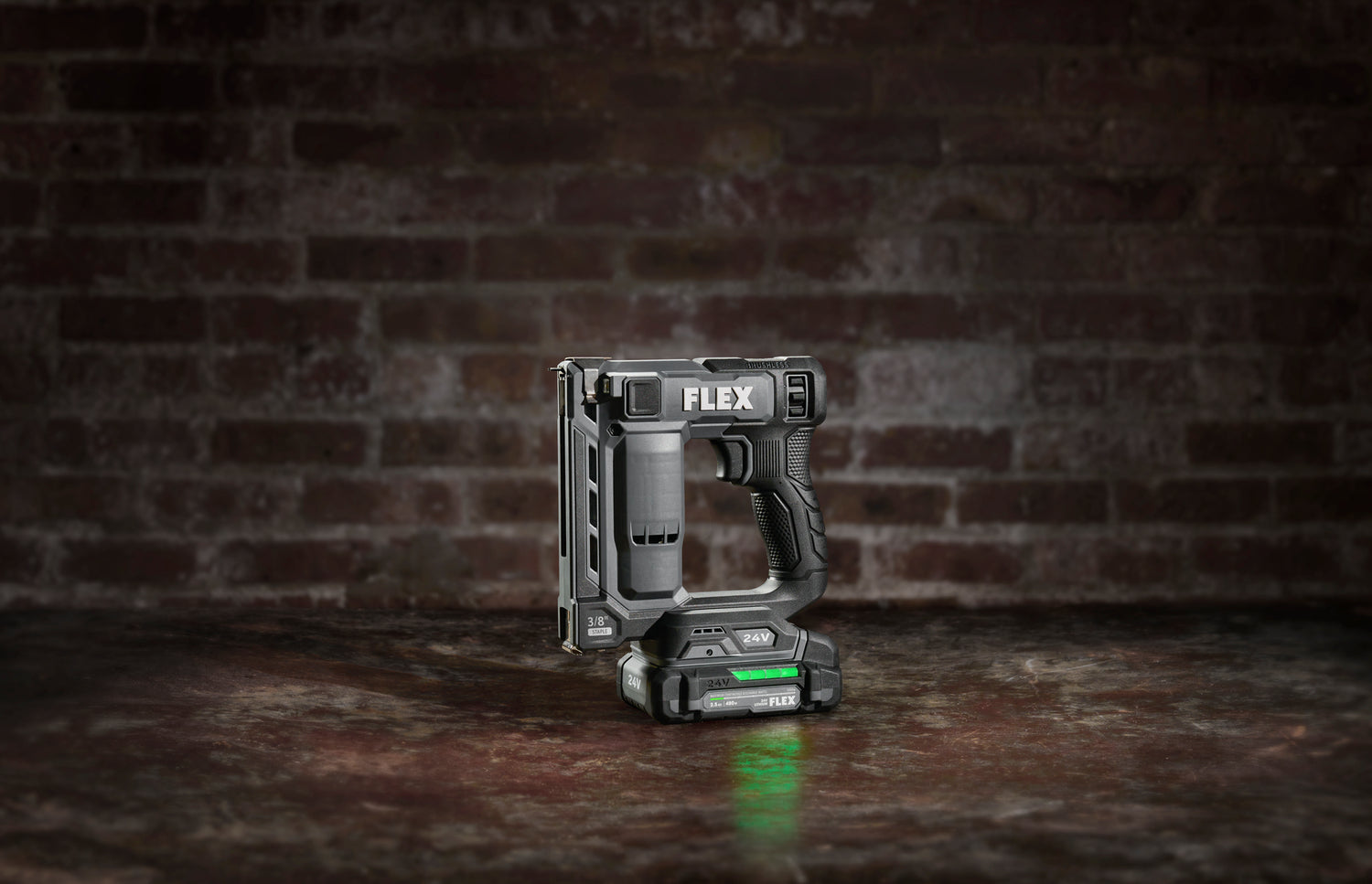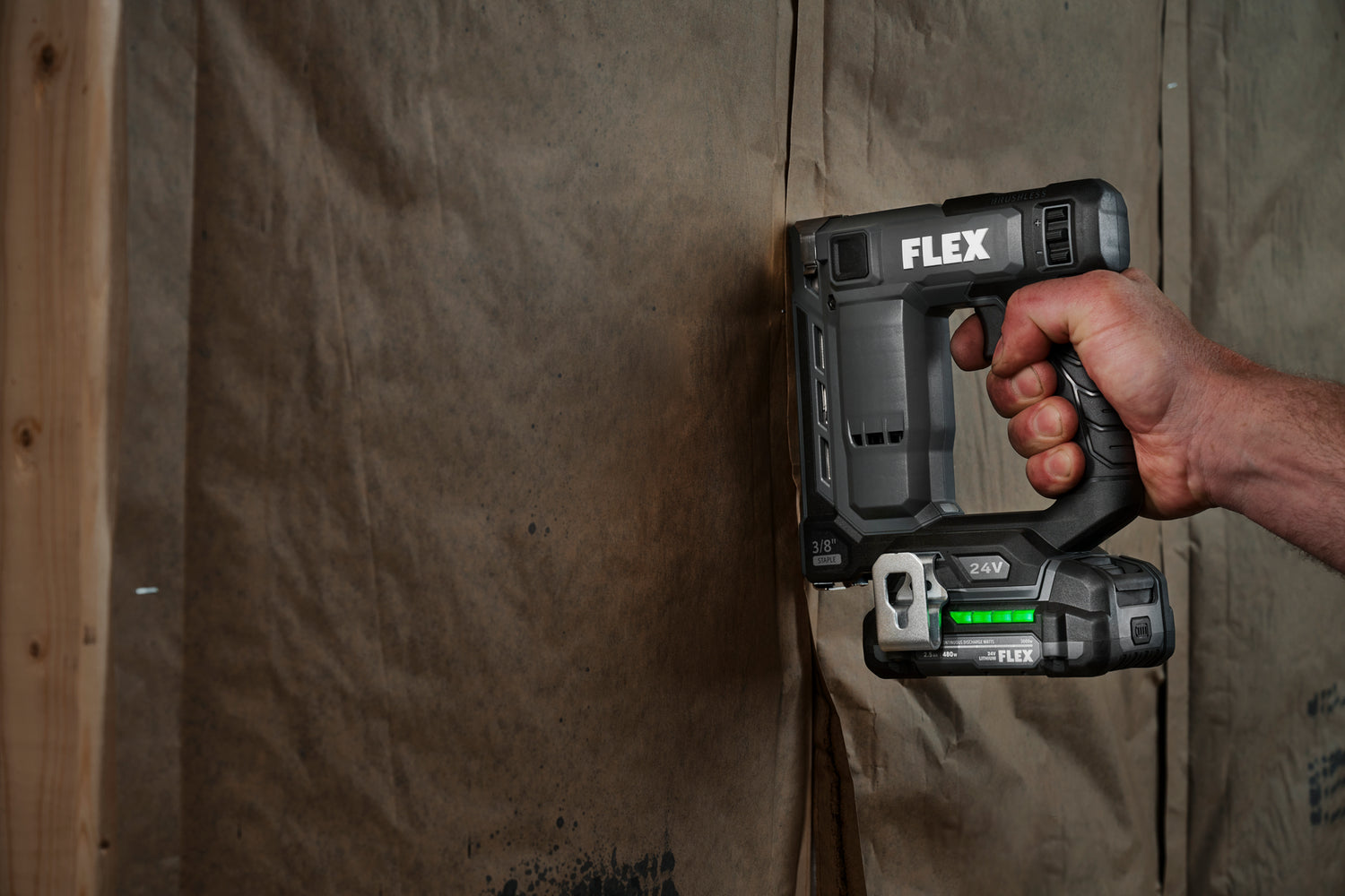 Power through installing Tyvek wrap, carpeting, and other jobs with the FLEX 24V Brushless 3/8” Stapler. This cordless stapler delivers high-speed power by driving up to 3 staples per second with zero ramp up time. It drives up to 5,000 staples on a single charge with a 2.5Ah lithium-ion battery for extended runtime. The staple gun features a power adjustment dial to easily set the ideal depth when driving fasteners, and its dual LED worklight delivers better visibility in dark work areas. The cordless staple gun toggles between bump and sequential firing modes and has a staple indicator to easily see how many staples remain in the magazine. Dry-fire lockout avoids blank firing and damage to your work when the staple supply is exhausted. The cordless stapler is compact and lightweight to conquer tight spaces with minimal fatigue. Its belt clip can be mounted on either side of the tool and features a lead-in profile. The stapler accepts 3/8-inch crown size fasteners. This cordless stapler delivers the FLEX Advantage of unmatched battery power, runtime, and fast charging. Kit includes the 3/8-inch stapler, 2.5Ah lithium battery, 160W Fast Charger, belt clip, (3) no-mar tips, and a FLEX bag. It’s all protected by the FLEX Limited Lifetime Warranty when registered within 30 days of purchase at registermyFLEX.com through