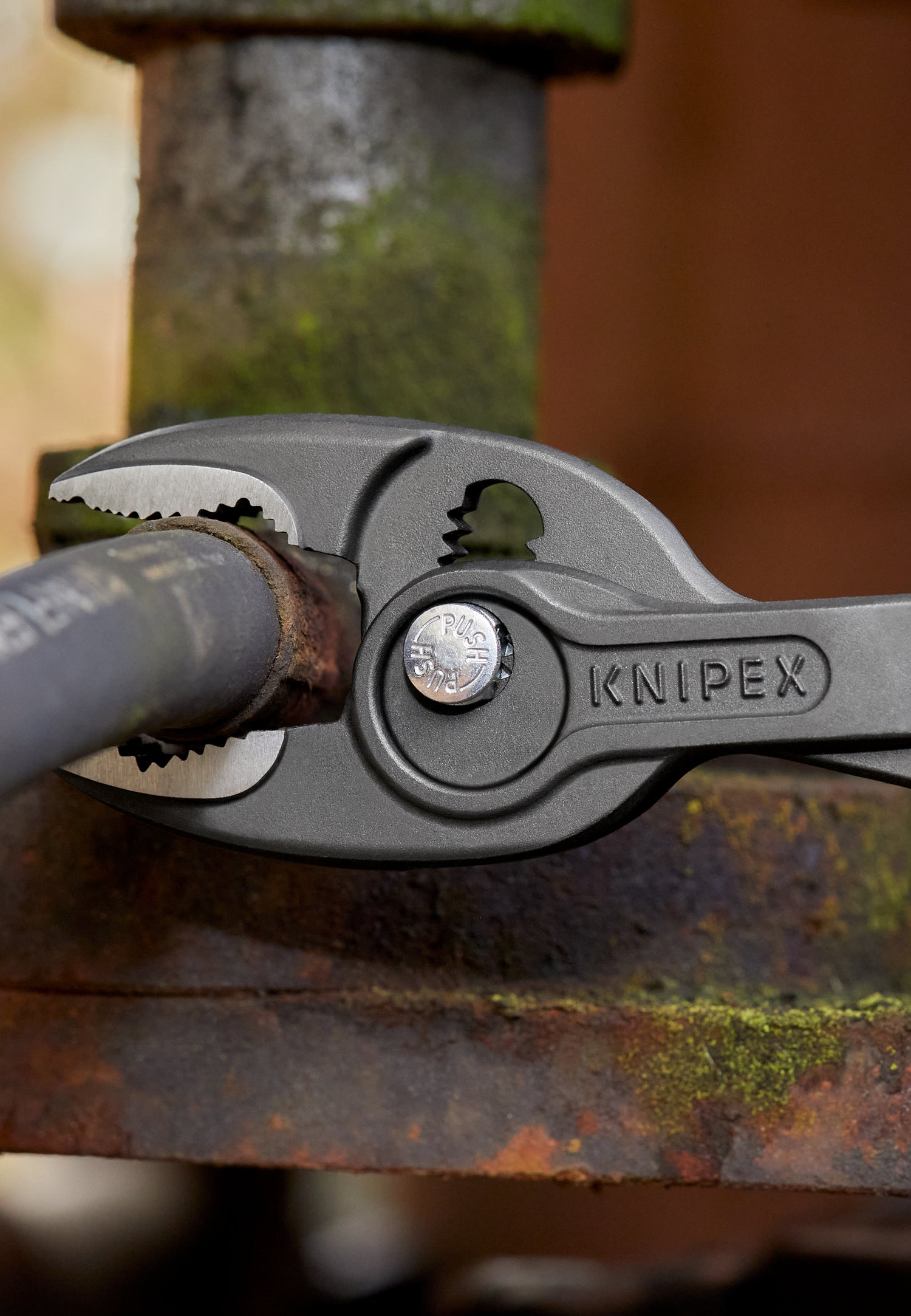 The Knipex 8" 2025 Holiday TwinGrip Pliers combine precision and durability in a limited-edition festive gift pack. Featuring black plastic grips with bronze lettering, these pliers excel at gripping stripped screws and bolts with front and side gripping areas. Their slim head design allows access in tight spaces, while five push-button adjustments ensure a secure fit that stays set. The robust box-joint construction and hardened gripping surfaces deliver reliable performance, complemented by a pinch guard for user safety. Ideal for professional use, they handle flat workpieces and fasteners from 4 to 22 mm with ease.