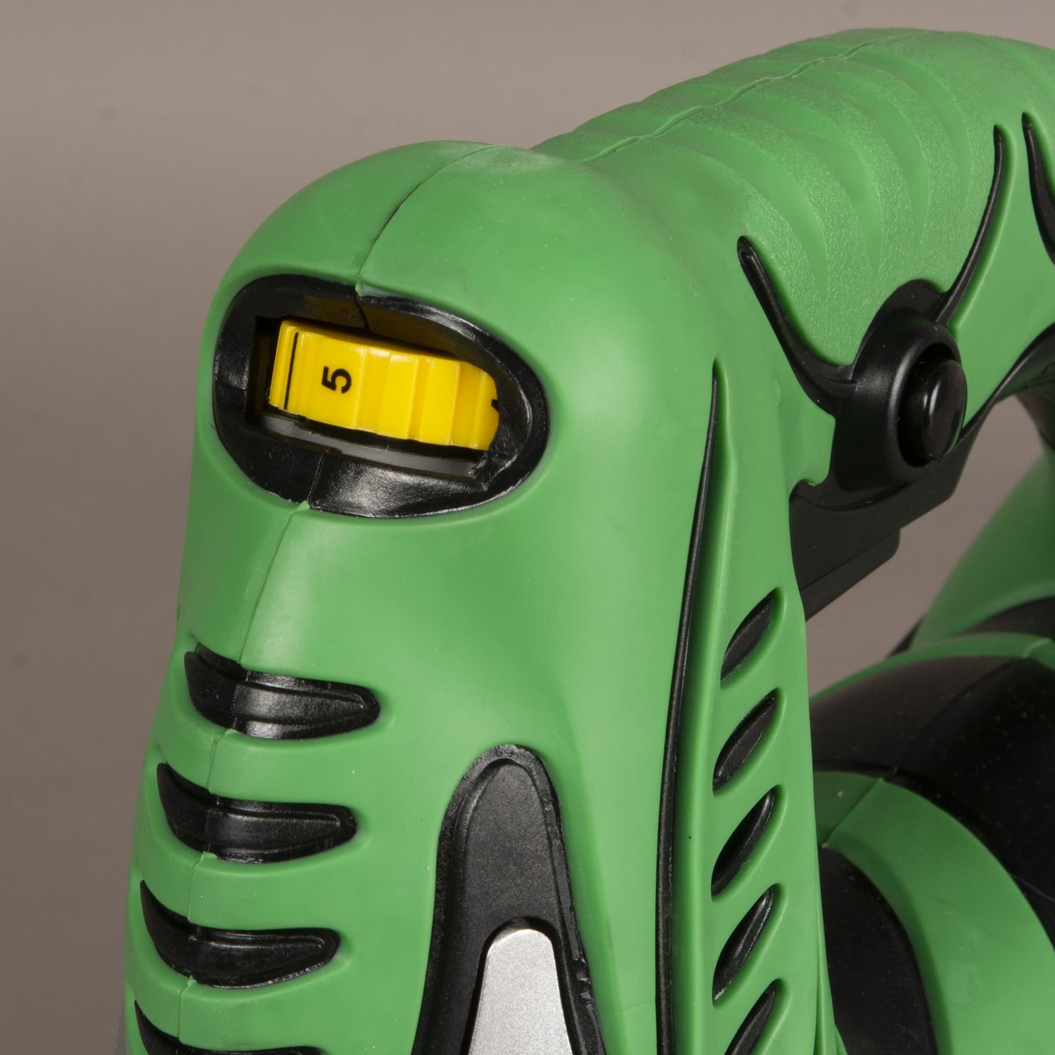 Lock-on, variable speed trigger allows the user to control the speed and keep it set without having to squeeze the trigger, preventing numb fingers after extended use