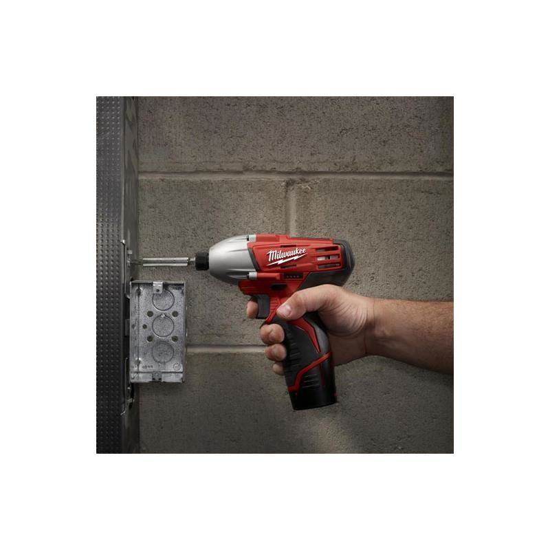 Get the Sub-Compact hex impact driver with Best-in-Class performance. The M12 Cordless Lithium-Ion 1/4" Hex Impact Driver features a Milwaukee 4-Pole motor and proprietary impact mechanism to provide 850 in-lbs of Torque and more impacts per minute for maximum productivity and Run-Time. Weighing just 2.3 lbs, Its Tool-Belt portable and small enough to fit in tight spaces. The M12 Red Lithium Battery Pack delivers more work per charge and more work over pack life than the competitors, as well as Best-in-Class performance in extreme jobsite conditions.