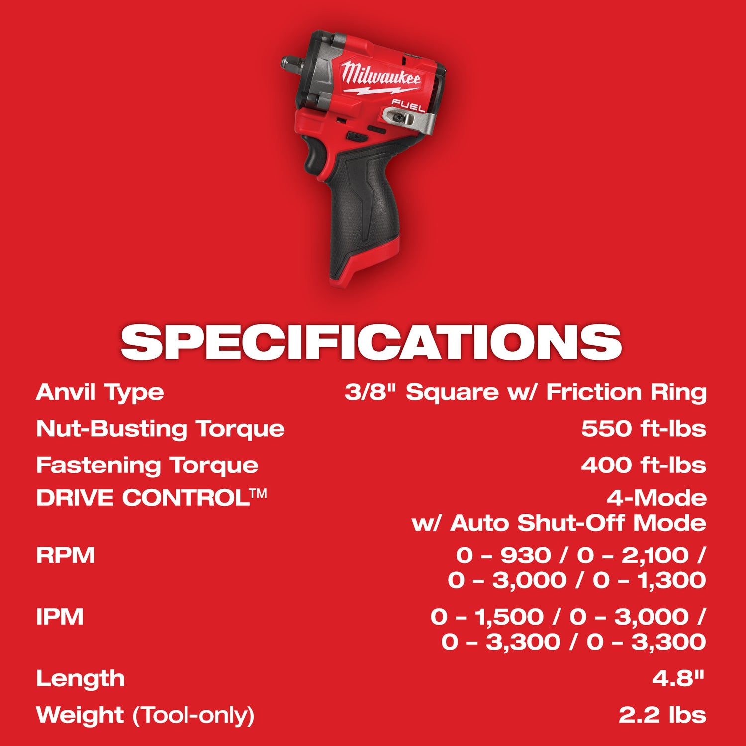 Milwaukee 2562-20 M12 FUEL™ Stubby 3/8" Impact Wrench