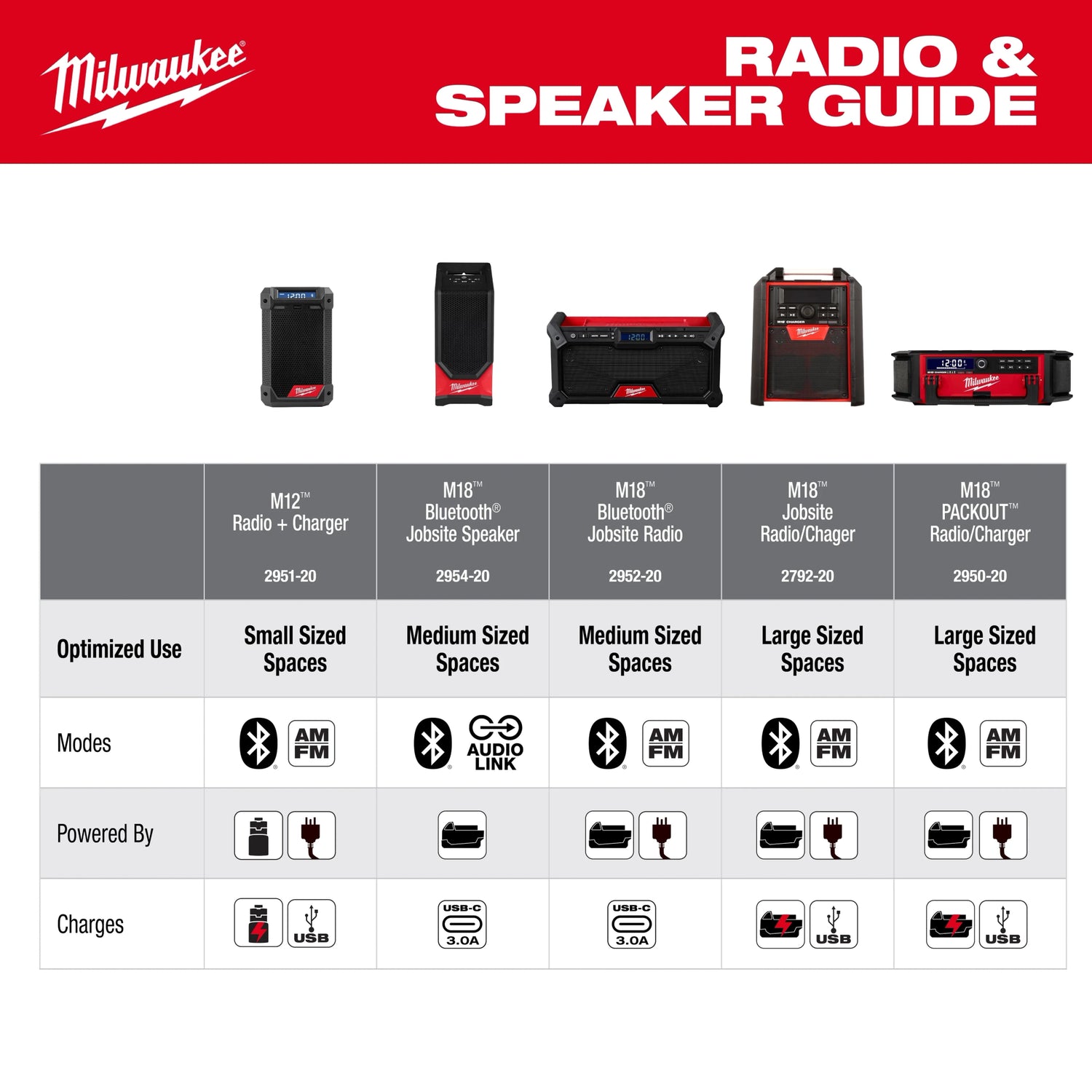 AUDIO LINK allows you to play music through multiple compatible Milwaukee® devices (over 200+) creating a larger sound experience