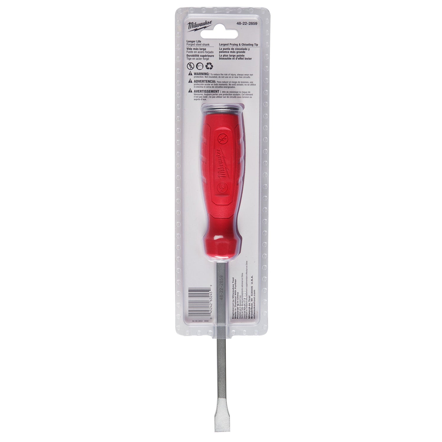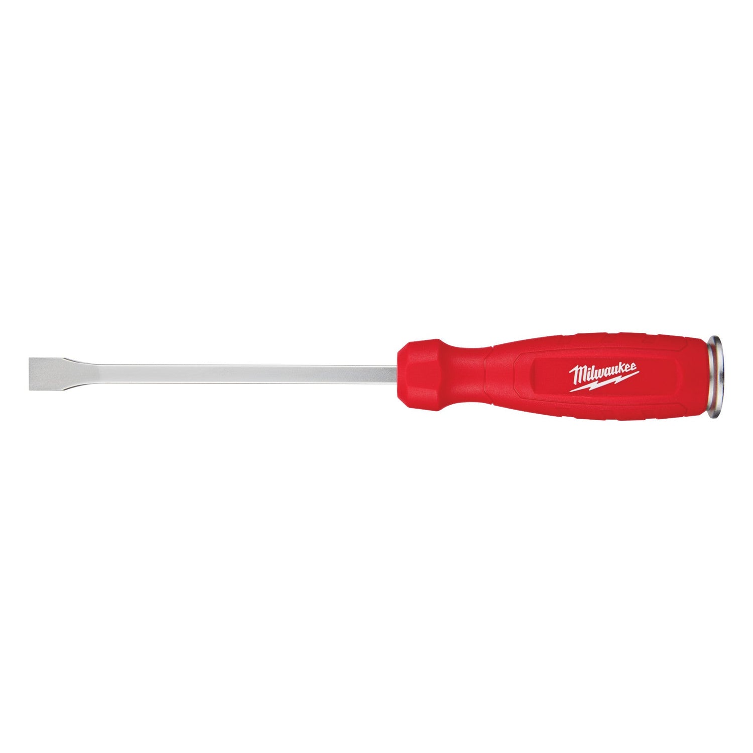Our MILWAUKEE® Demolition Driver features a reinforced full-metal core designed to give you maximum job site toughness and durability. The hammer-ready steel strike cap and 1/2" prying and chiseling tip are the largest in the industry and are designed to withstand the most aggressive demolition screwdriver applications. The forged steel shank offers 2X longer life and features a wrench-ready square design to deliver additional leverage.