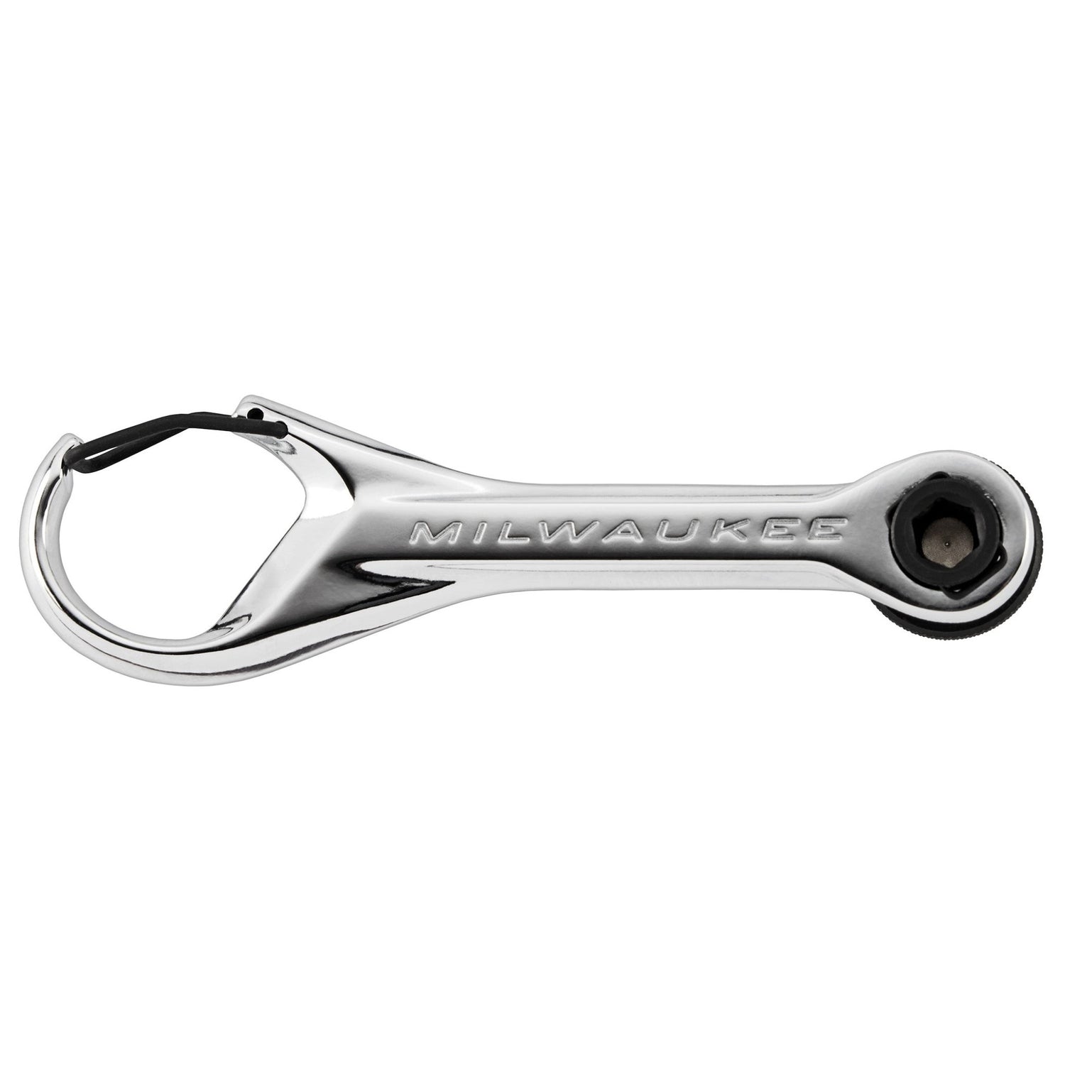The MILWAUKEE® 7-in-1 Multi-Bit Mini Ratchet provides better access in tight spaces by offering 4° of arc swing. This multi-bit mini ratchet features a versatile finger loop and storage clip for increased control and easy storage. The attachable bit holder offers easy bit access and better organization. The thumb wheel allows for tightening and loosening fasteners when space is limited. The Milwaukee® 7-in-1 Mini Bit Ratchet is backed by a Limited Lifetime Warranty.