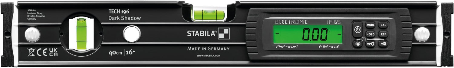Millions of tradespeople rely on precise and robust TECH spirit levels from STABILA. This limited edition model combines a classy appearance in an anthracite matt coating with high-quality Made in Germany technology. Digital measurements make work easier and save time. Measure inclines and slopes easily and precisely using two digital displays that can be illuminated. Put components in the right position with ease using the acoustic guidance. An indispensable tool that is water and dustproof in accordance with IP 65 and will take your work to the next level.