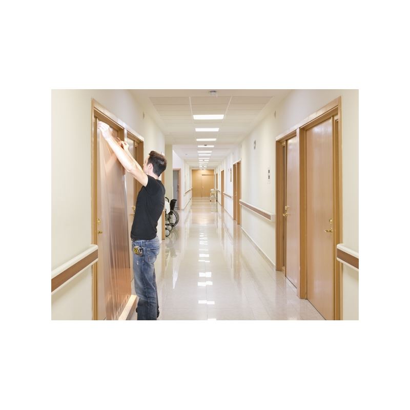 Protect many doors for large construction projects with Door Armor. This heavy duty, Co-Extruded film resists and prevents marks and scratches. It has a unique resin that adheres to almost all smooth and lightly textured surfaces. Use it on factory finished metal and wood doors, Composite, Even glass, Without the risk of adhesive residue.