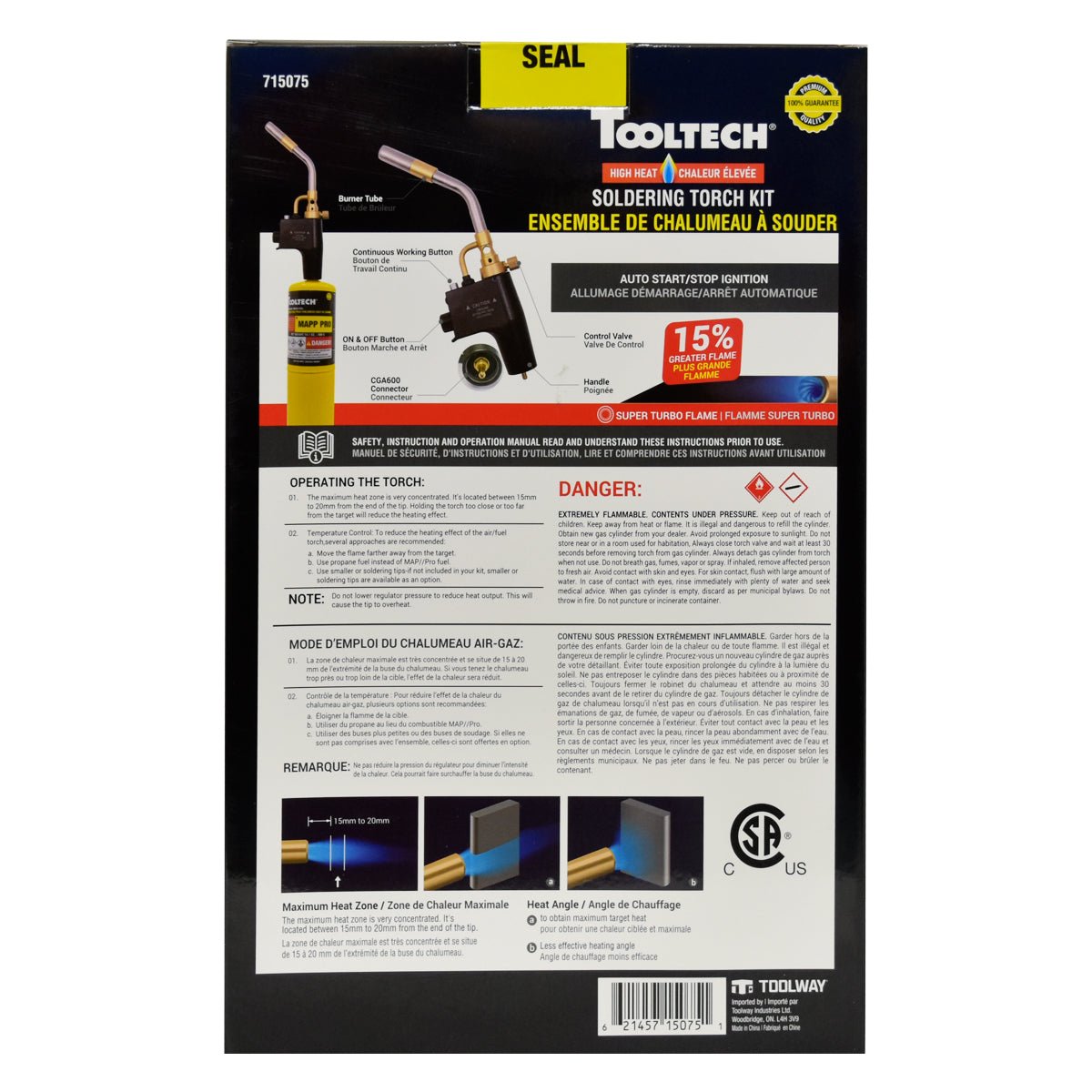 Tooltech 715075 HAZ High Heat Soldering Torch Kit Mapp Pro Gas 14.1oz