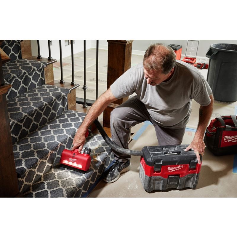 Our M12 AIR-TIP Utility Nozzle makes jobsite cleanup easier with a powered brush roll that agitates debris for deep cleaning applications. The powered brush roll turns on at the push of a button and is powered by an M12 REDLITHIUM Battery. Paired with a vacuum that is turned on, the Utility Nozzle will be able to clean up more debris in one pass for increased productivity. A suction control valve allows for ease of use on carpets and substrates. The LED lights provide adequate visibility for cleaning in low-lit environments. The tool-free brush roll removal delivers you easy maintenance when needed. The MILWAUKEE M12 AIR-TIP Utility Nozzle is compatible with other wet/dry vacuum brands with 1-1/4in, 1-7/8in, 2-1/2in diameters, and is part of the AIR-TIP family of Trade Focused Vacuum Accessories.INCLUDES: