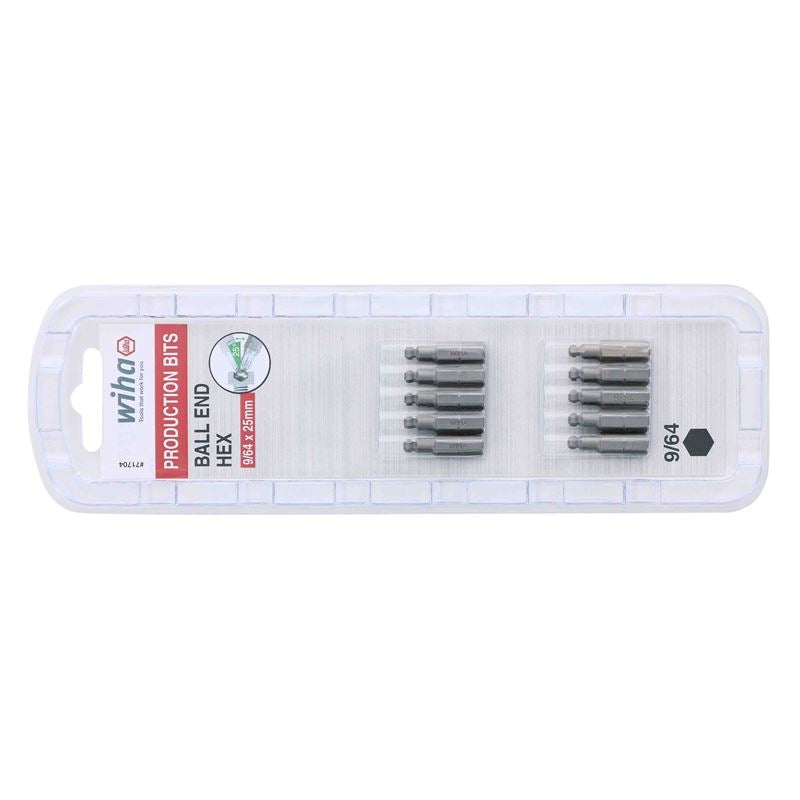 Wiha Ball End Hex Inch Insert Bit 9/64in Pack of 10 Bits