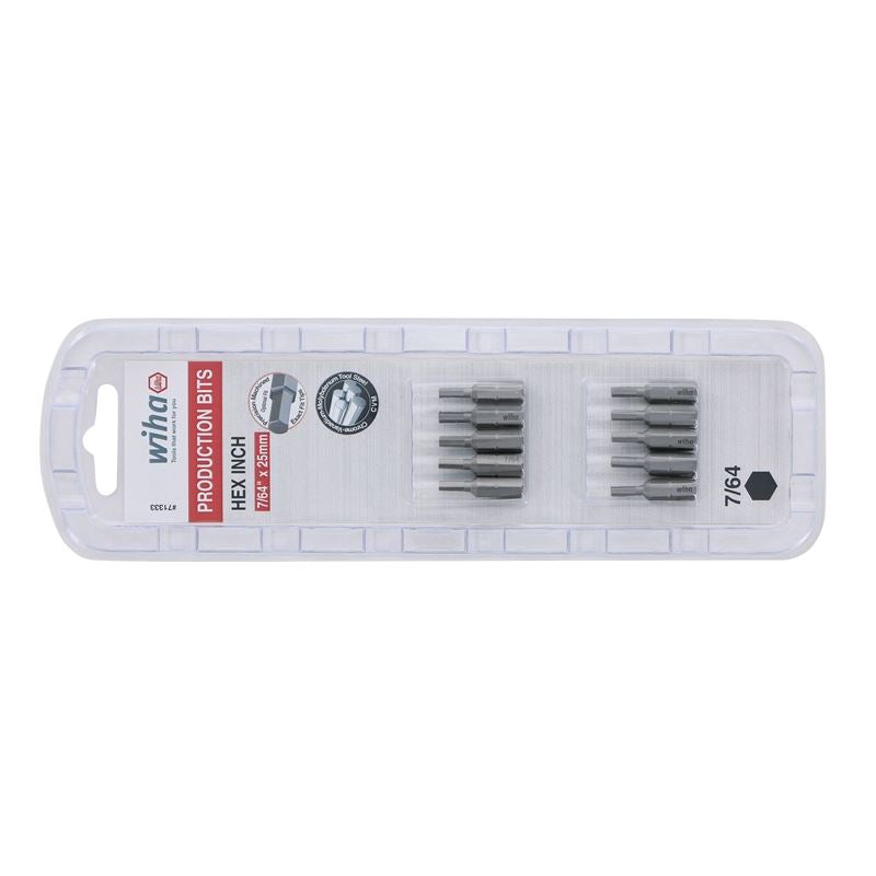 Wiha Hex Inch Insert Bit 7/64 x 25mm Pack of 10 Bits