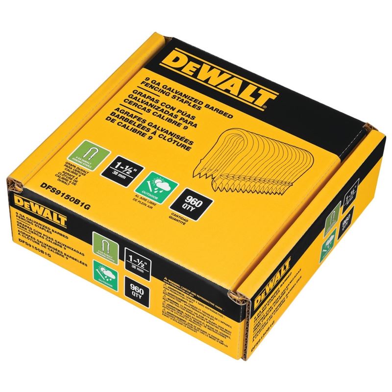 The DEWALT 9 GA Fencing Staples are designed for use with the DCFS950 cordless fencing stapler. Featuring divergent point tips, single barb legs paired with an adhesive coating, a galvanized zinc-aluminum coating, and are available in three common sizes of 1-1/2in, 1-3/4in, 2in to handle a wide variety of rural applications. With these staples you can get the job done quickly and be confident they will stand tough against the elements long after the job is done.