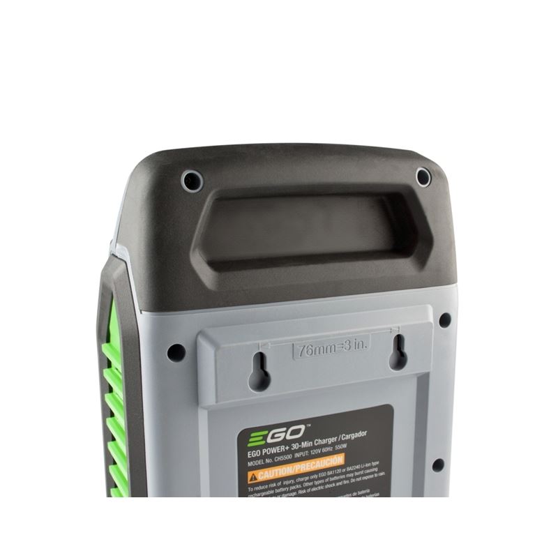 The EGO POWER+ Rapid Charger features an intelligent battery control system that monitors each cells charge and temperature to deliver the quickest, most efficient charge. Its active cooling fan system and advanced communication with the battery supports rapid charging without overheating for maximum battery life. Its rapid recharging capability ensures limited downtime with any EGO 56V ARC Lithium battery. It has an integrated fuel gauge that shows five charge levels in 20 percent increments. From zero, it can fully charge a 2.5Ah battery in as little as 30 minutes, 5.0Ah in 40 minutes, 6.0Ah in 45 minutes, 7.5Ah in 60 minutes, 10.0Ah in 70 minutes, and 12.0Ah in 90 minutes (all charge times are approximate). The EGO POWER+ Rapid Charger charges all EGO POWER+ 56V ARC Lithium batteries.