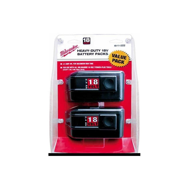 Milwaukee | 48-11-2232 Value Pack 18V 2.4 Amp Hour NiCad Slide Style Battery, 2 Pack