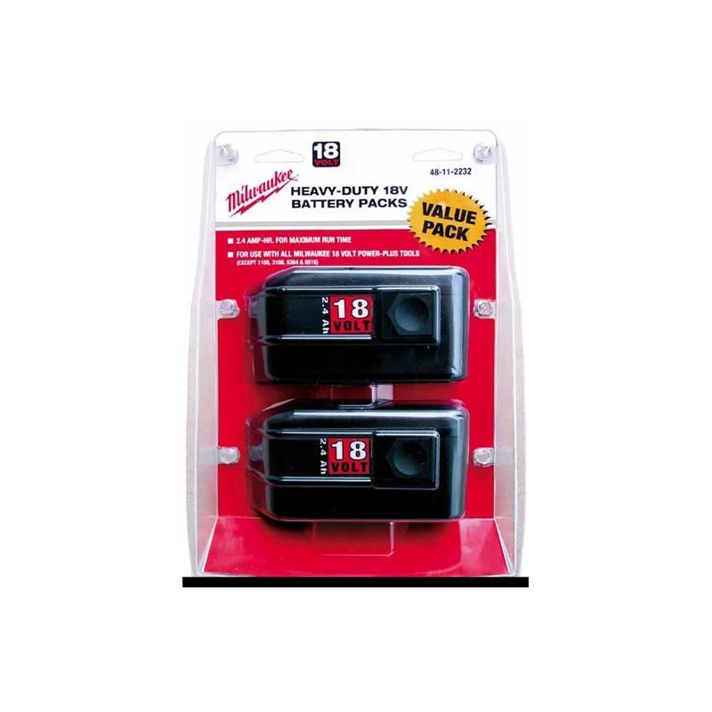The solid power source for all of your 18-volt Milwaukee tools. When it comes to dependable power, Milwaukees 18V Battery is your workhorse. With 2.4 amp-hour capacity, this NiCd battery delivers ultimate performance and long life so you can work longer without interruption. Theres no memory effect, so the full battery capacity is always available.