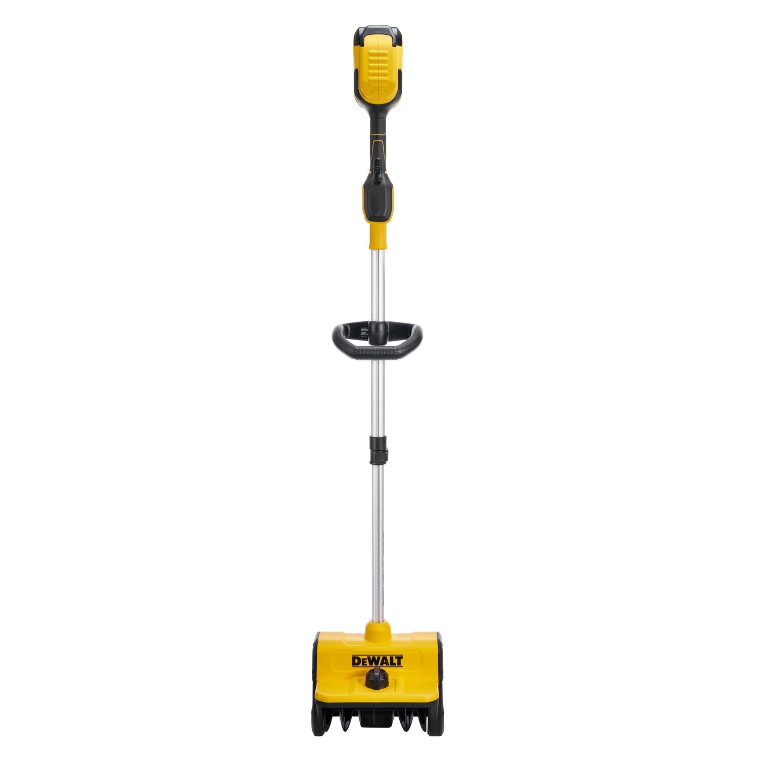 Experience the power of DEWALT with our cutting-edge 20-Volt Cordless 10 in. Brushless Snow Shovel, a dynamic solution for your winter needs. Crafted to integrate seamlessly with the DEWALT 20-Volt MAX Tool Platform, this snow shovel offers both convenience and high performance. Designed with a high-efficiency brushless motor, the DEWALT snow shovel not only maximizes runtime but also extends motor life, ensuring reliability season after season. Weighing in at 13.23 lbs. and featuring an ergonomic, adjustable-length pole, this machine delivers a balanced, comfortable experience that allows you to move freely and efficiently. Clear snow without the strain, preserving your energy for where it counts. With a 10 in. cleaning width and 6 in. D, you'll experience maximum efficiency in snow removal. The adjustable up to 60° snow guide plate adds a layer of customization, allowing you to direct snow exactly where you need it, throwing it up to 20 ft. away. From your driveway to your decking, maneuver through winter's worst with ease. Our tool is designed for quick jobs with a runtime of 20-minutes on a 4ah battery, ensuring you can tackle essential areas quickly and effectively. When it's time to store, the compact design fits neatly into any space, ready for the next snowfall. GET READY this winter with the DEWALT 20-Volt Cordless 10 in. Brushless Snow Shovel and transform your approach to snow removal. Make your winters more manageable and less back-breaking, starting now.