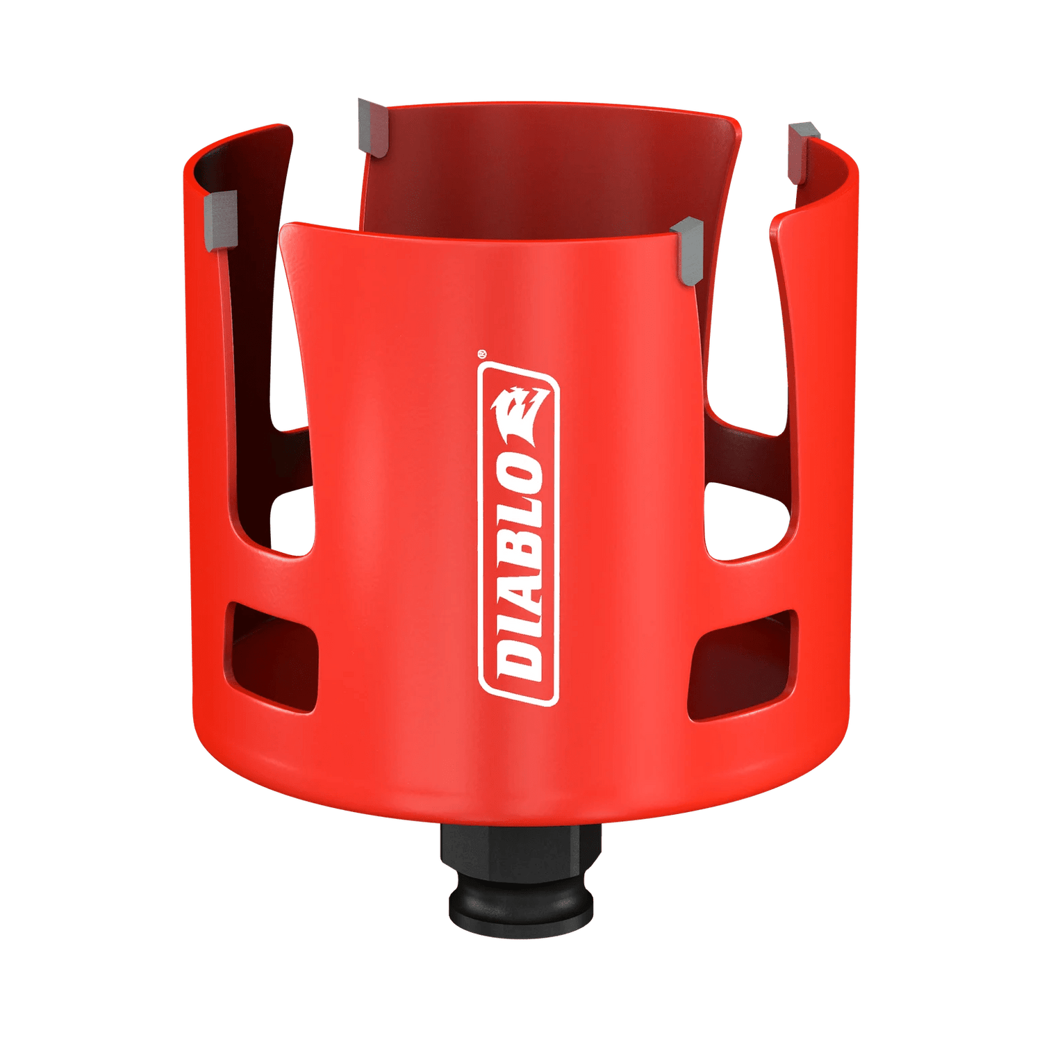 Diablo’s new range of high-performance Demo Demon® carbide teeth rough-in hole saws deliver 50X longer cutting life, faster cutting performance and maximum productivity in tough material, including nail-embedded wood, clean wood, drywall, shingles, fiber cement and more. An optimized carbide tooth geometry provides up to 5X faster holes than other hole saws. Unlike anything on the market, Diablo’s hole saw system and universal mandrel design simplify the attachment process for fast and efficient hole saw mounting. These radical new hole saws provide ultimate cutting length to bore deeper holes in a single pass, tool-free plug. Diablo’s hole saws are compatible with Diablo’s SnapLock™ PLUS mandrel resulting in quick, easy, and effortless cup changes.
