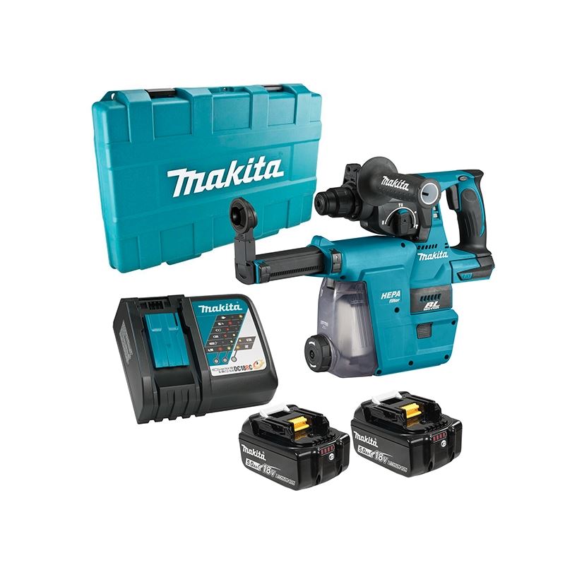 Makita DHR242RTEW 18V LXT Brushless Cordless 15/16 in SDS-PLUS Rotary Hammer w/DX06 Dust Extraction Attachment (5.0 Ah x2 Kit)