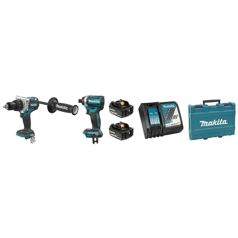 Includes: 1/2 in Cordless Drill / Driver with Brushless Motor (DDF481Z), 1/4 in Cordless Impact Driver with Brushless Motor (DTD154Z), Two 18V (5.0 Ah) Li-Ion Batteries BL1850B (196675-2), Rapid Charger (DC18RC), Plastic Carrying Case (821524-1)