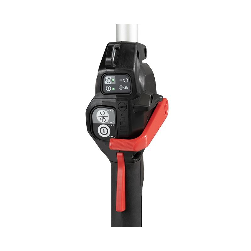 Reverse rotation function allows operator to quickly clear trimmer head of entangled grass and weeds
