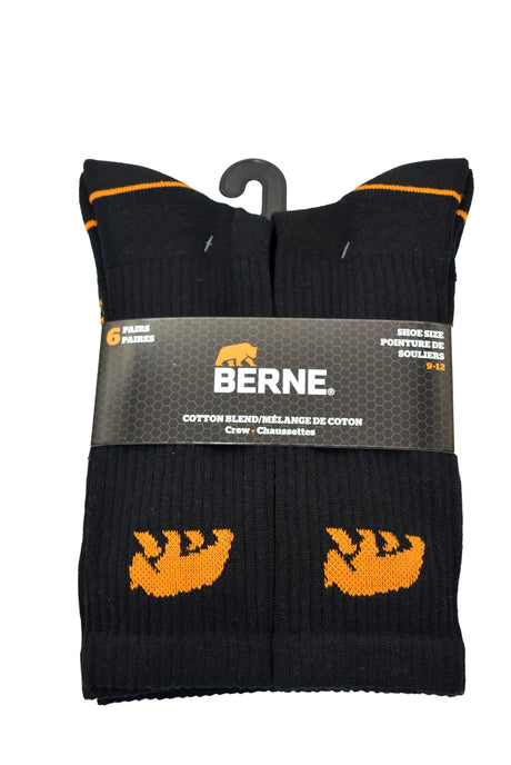 BERNE Black Cotton Blend All Purpose Crew Socks - 6 Pack