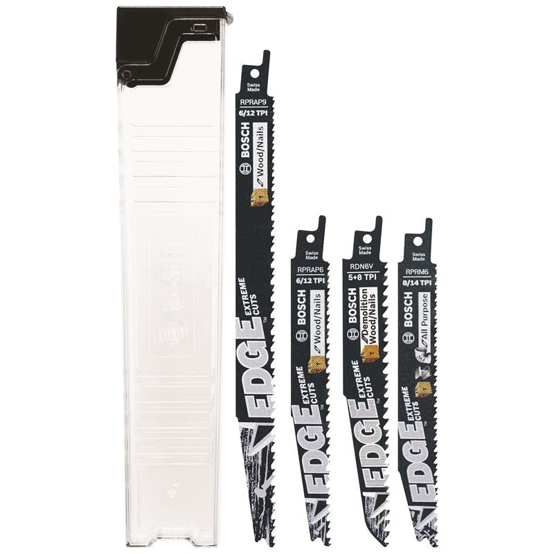 Bosch Edge Reciprocating Saw Blades start sharp, stay sharp, and with Turbo-Teeth technology last up to 3X longer than standard reciprocating saw blades. Designed for extreme cuts for tough construction uses, these blades deliver the best performance for pro cutting applications. The Edge's exclusive Turbo-Teeth design, performance-optimized blade geometry and Swiss-made reliability add up to a line of blades that deliver results.