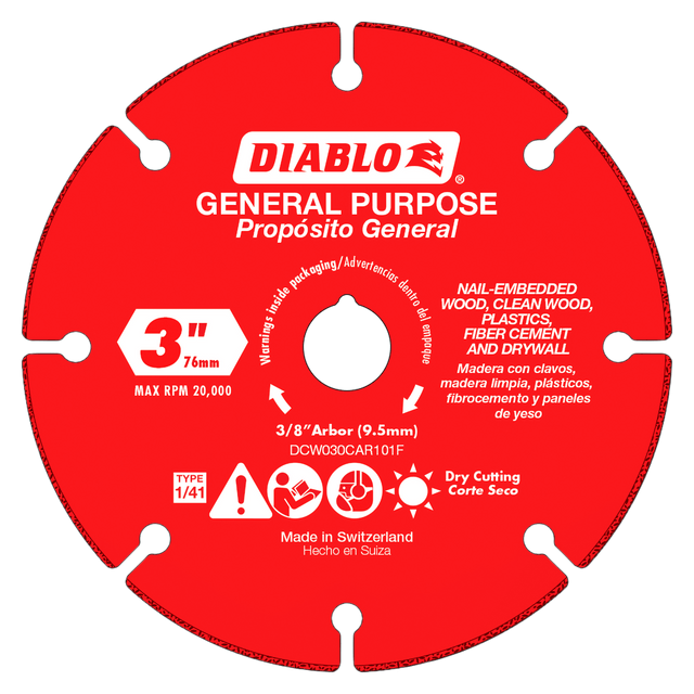 Diablo DCW030CAR101F 3" Carbide Grit Multi-Material Cut-Off Disc