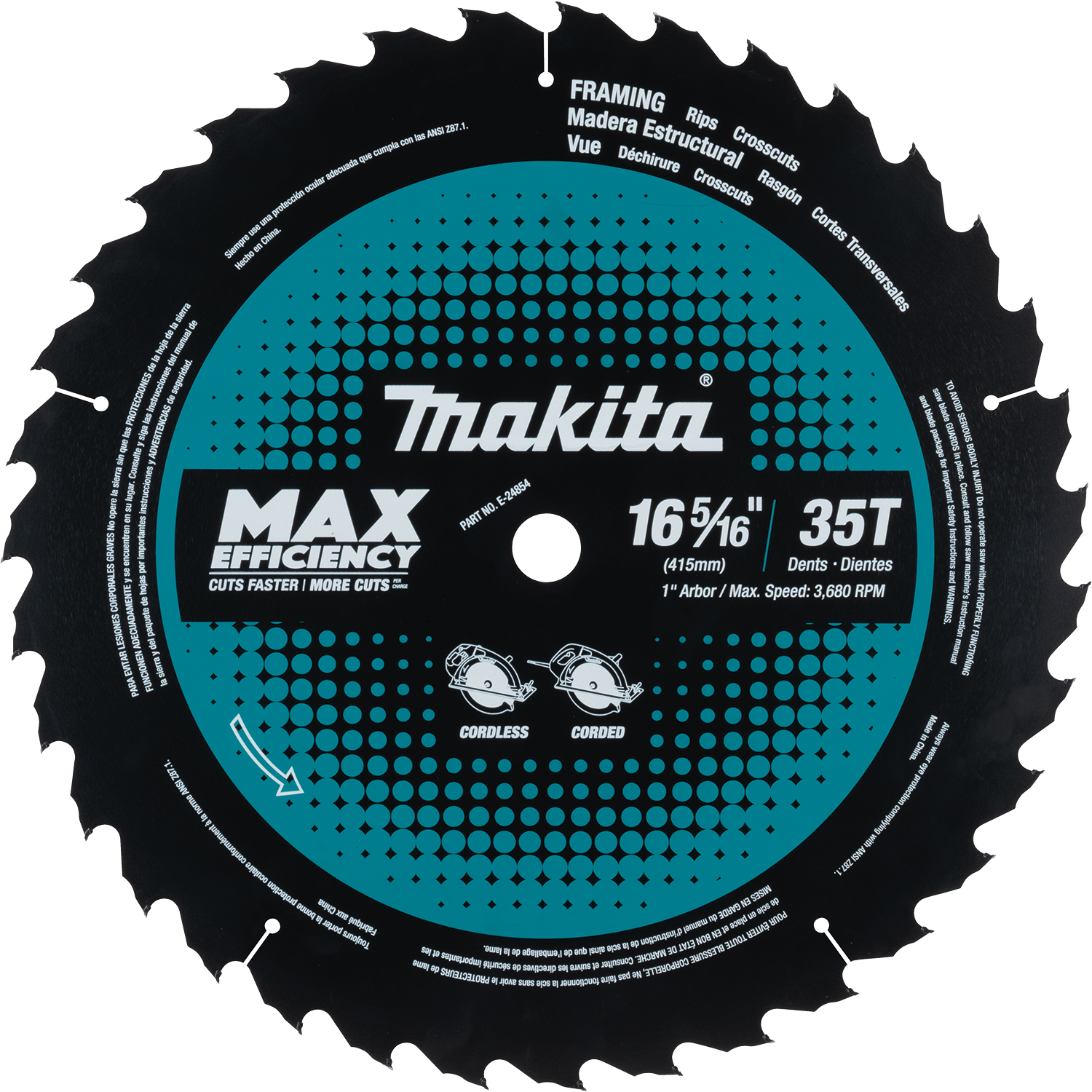 Makita E-24854 16‑5/16" 35T Carbide‑Tipped Max Efficiency Circular Saw Blade