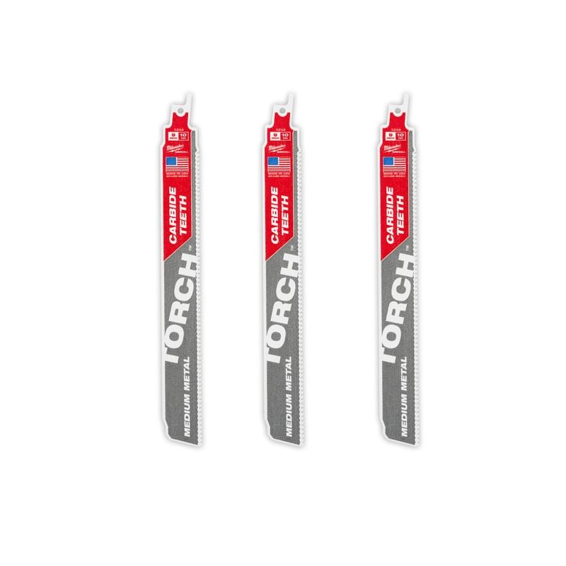 The TORCH with Carbide Teeth for Medium Metal cuts longer, cuts more, cuts faster. This blade is designed with Carbide Teeth for longer life vs. bi-metal blades in EMT conduit, Strut, Rigid Conduit, Stainless Steel Pipe, Stainless Steel Strut, and Copper. This 10TPI blade is ideal for smooth, fast cuts and enhanced durability.