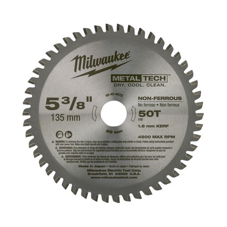- Milwaukee - 48-40-4075 5-3/8 in. 50 Tooth Non-Ferrous Metal Circular Saw Blade $55.99 CADPrix unitaire /Indisponible